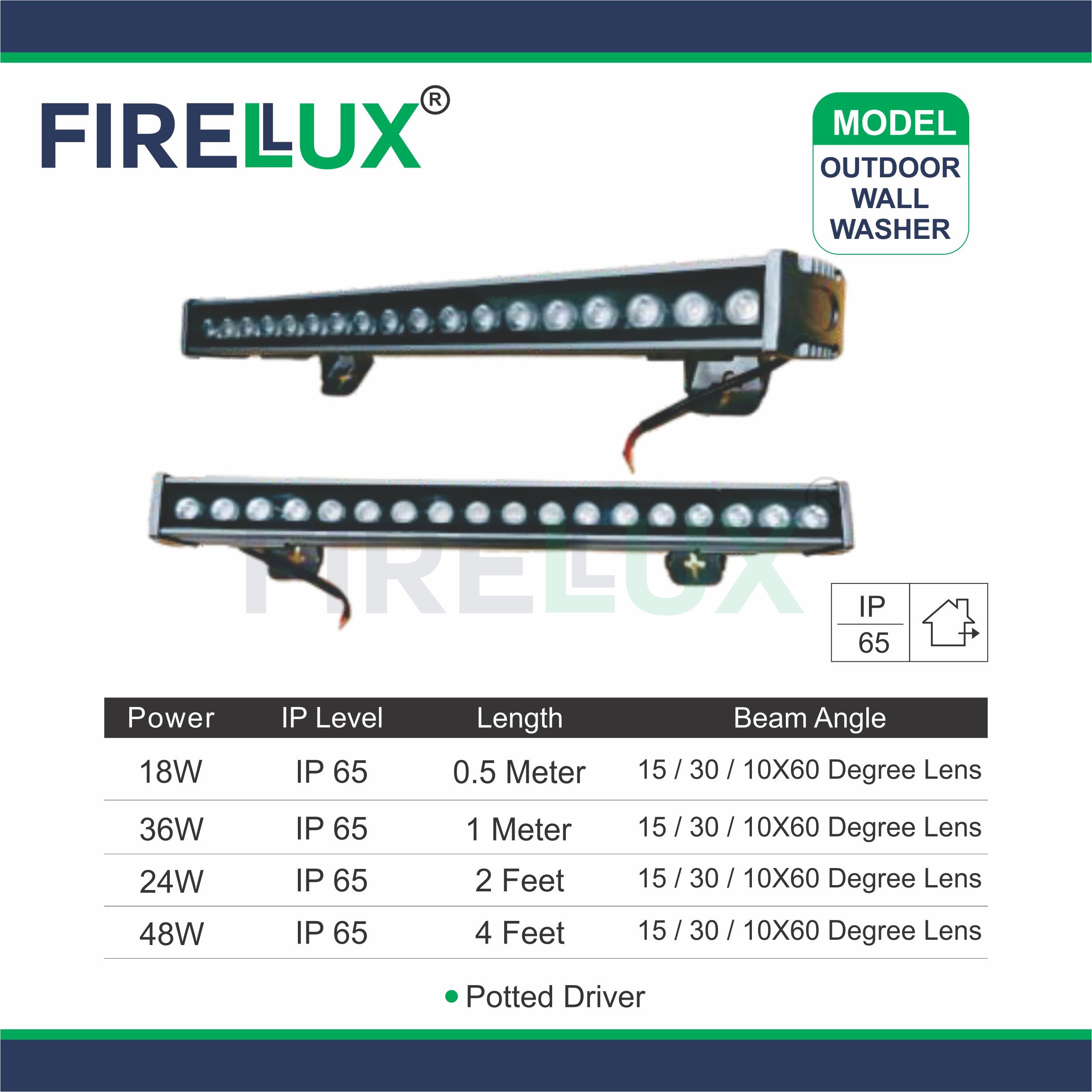 The Outdoor Wallwasher Light (IP65) is a robust and versatile lighting solution, featuring: